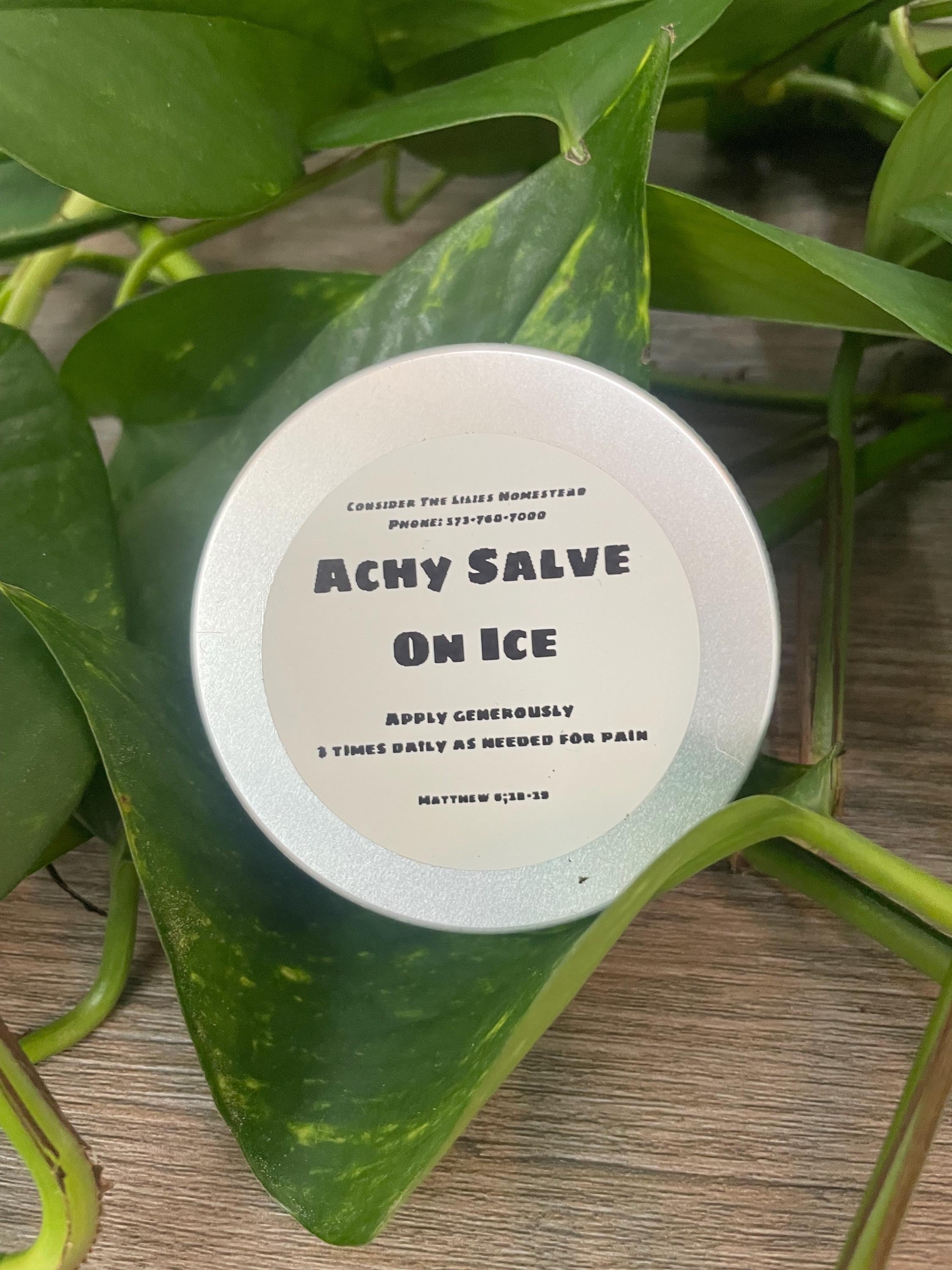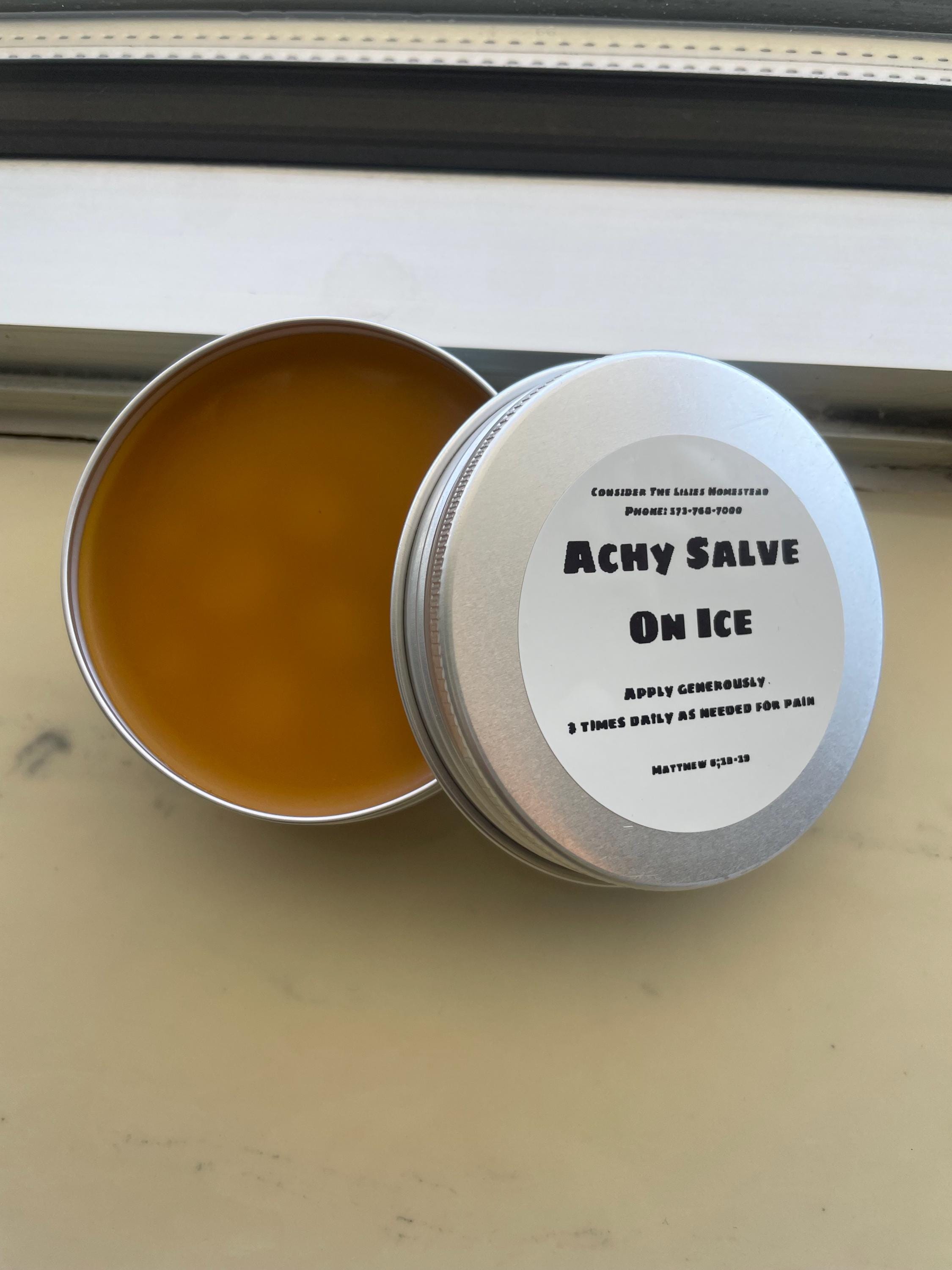 This is an all natural salve made on my homemade from organic and wild crafted herbs. This is good for sore muscles and has a warming and cooling sensation when applied generously.